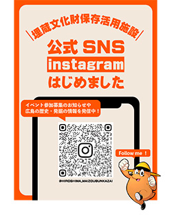 これまで当施設ではホームページ「ひろしまWEB博物館」を中心に広島の歴史や発掘調査、出土品に関する情報の発信を行っておりましたが、ホームページに載せていなかった事業の様子なども含めて、今後はみなさんに身近なSNSを併せて情報発信をしていきたいと考えています。